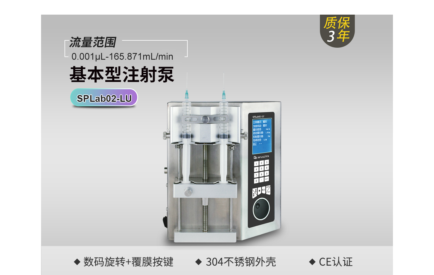 線速度范圍:5μm/min-132mm/min(流量=線速度*注射器內(nèi)截面積)