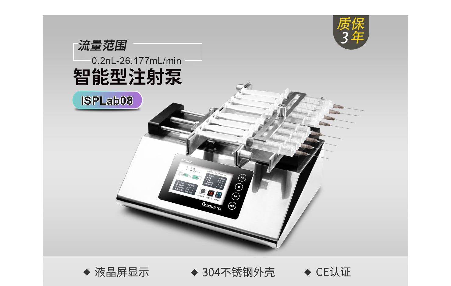 線速度范圍:1μm/min-132mm/min(流量=線速度*注射器內(nèi)截面積)