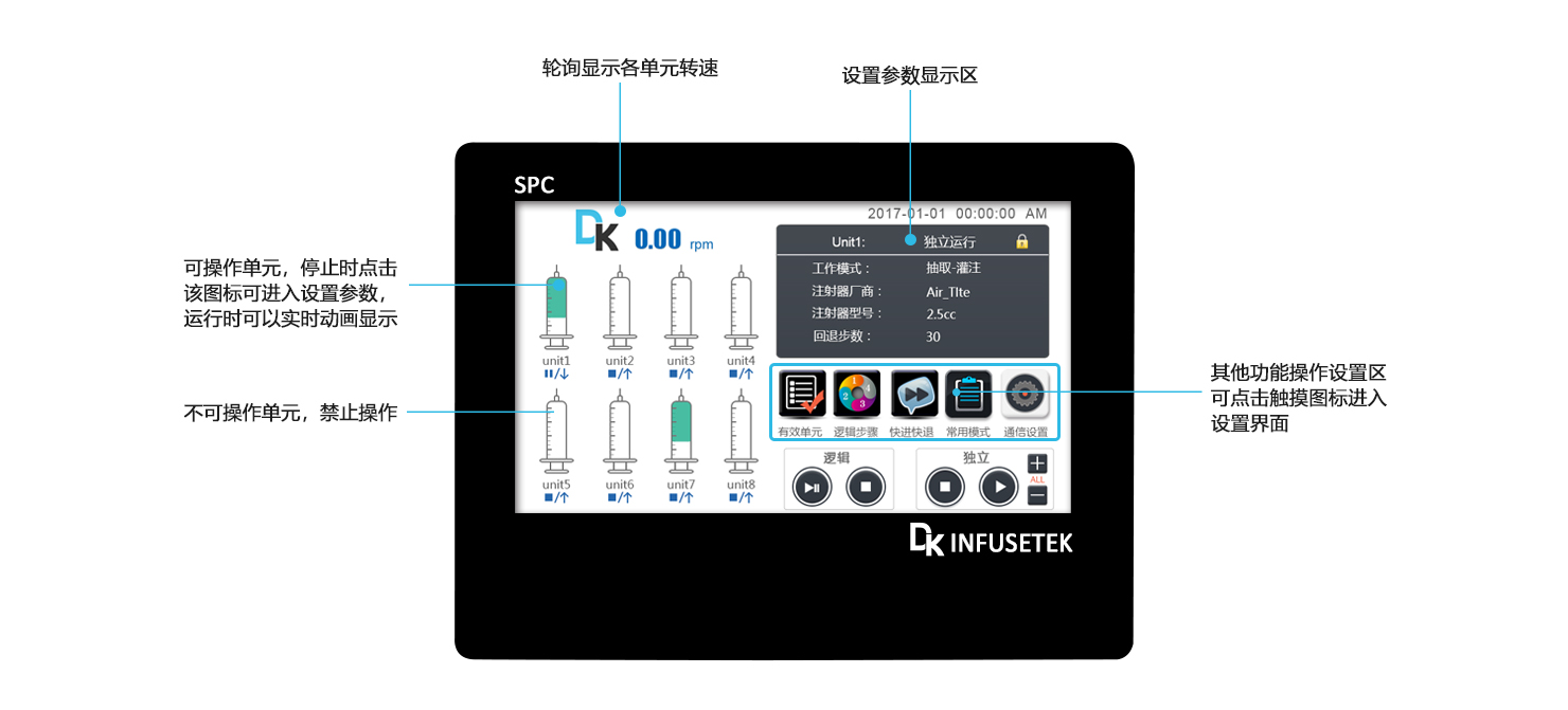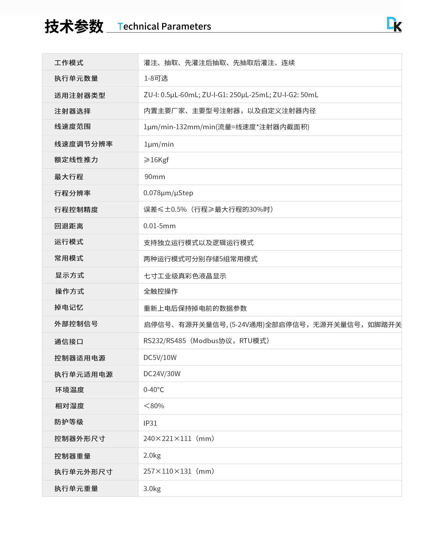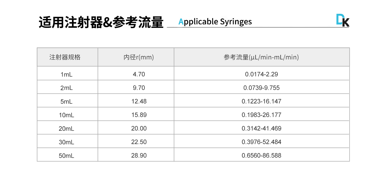 線速度范圍:1μm/min-132mm/min(流量=線速度*注射器內(nèi)截面積)